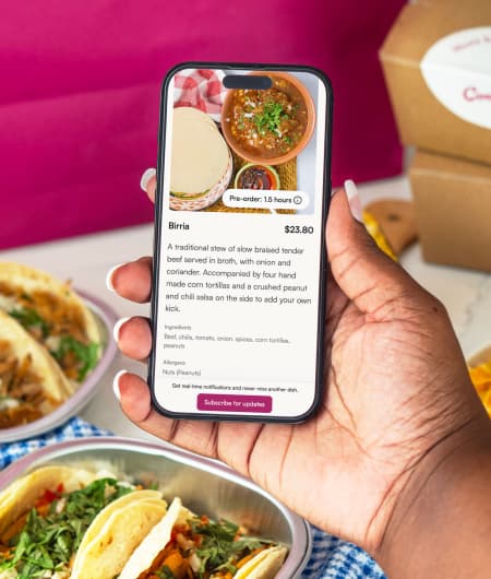 With Cookin, you can offer delivery, pick-up, or both. Your storefront seamlessly integrates with third-party drivers—once you mark an order as "ready for pick-up," a driver will collect and deliver it. You and your customer get tracking info, so you can focus on cooking!