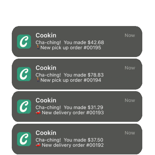 Join thousands of home chefs, caterers, bakers, and local pop ups who are selling their food with Cookin.